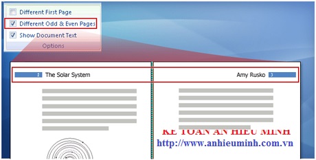 f. Header và Footer khác nhau cho các trang chẵn và lẻ