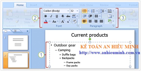 d. Nhập nội dung văn bản vào slide