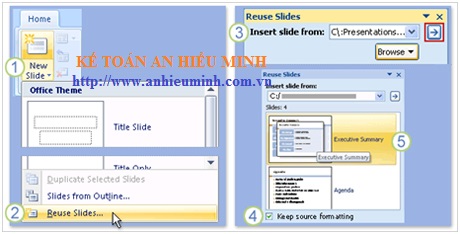 Bạn có thể sử dụng những slide từ bài thuyết trình khác, cách làm như sau: